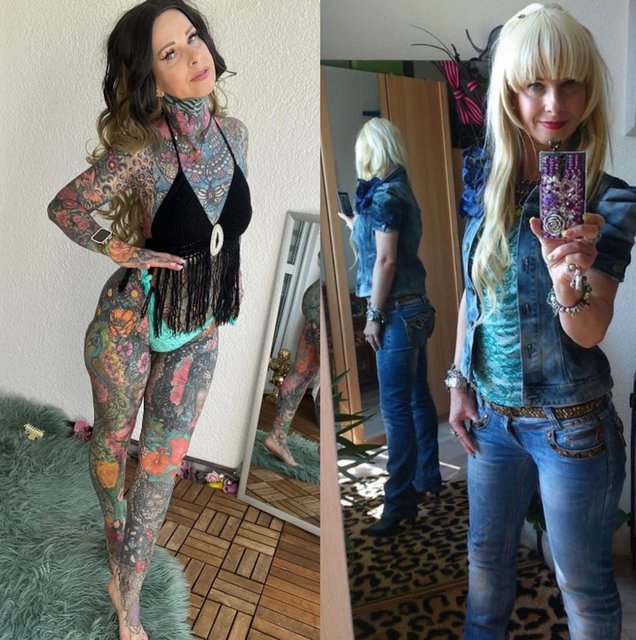 Tüm vücudunu dövmelerle kaplatmak için binlerce euro harcayan 56 yaşındaki kadının ilginç tarzı
