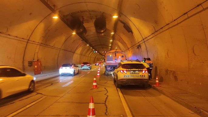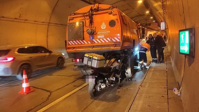 Motosiklet temizlik aracına ok gibi saplandı. Kazada motosiklet sürücüsü yaralandı. Kazayı görenlerin ihbarı üzerine olay yerine polis ve sağlık ekibi sevk edildi. Tünelde güvenlik tedbiri alınmasının ardından yaralı sürücü ambulansla hastaneye kaldırıldı. Kaza nedeniyle tünelde trafik yoğunluğu meydana geldi.