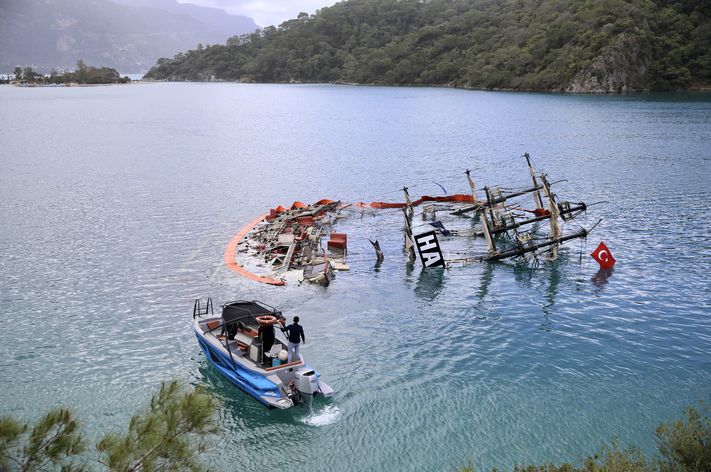 Muğla'nın Fethiye ilçesinde bir tur teknesi şiddetli fırtınada kayalıklara çarparak battı. Feci kazada teknede kayıp olarak kişinin cansız bedenine ulaşıldı