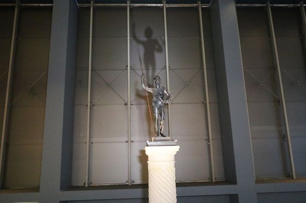 İHA'nın haberine göre bronzdan yapılmış olan heykelin göz bebekleri altın ve gümüşten oluşurken heykelin, bir elinde mızrak, bir elinde çiçek bulunuyor.