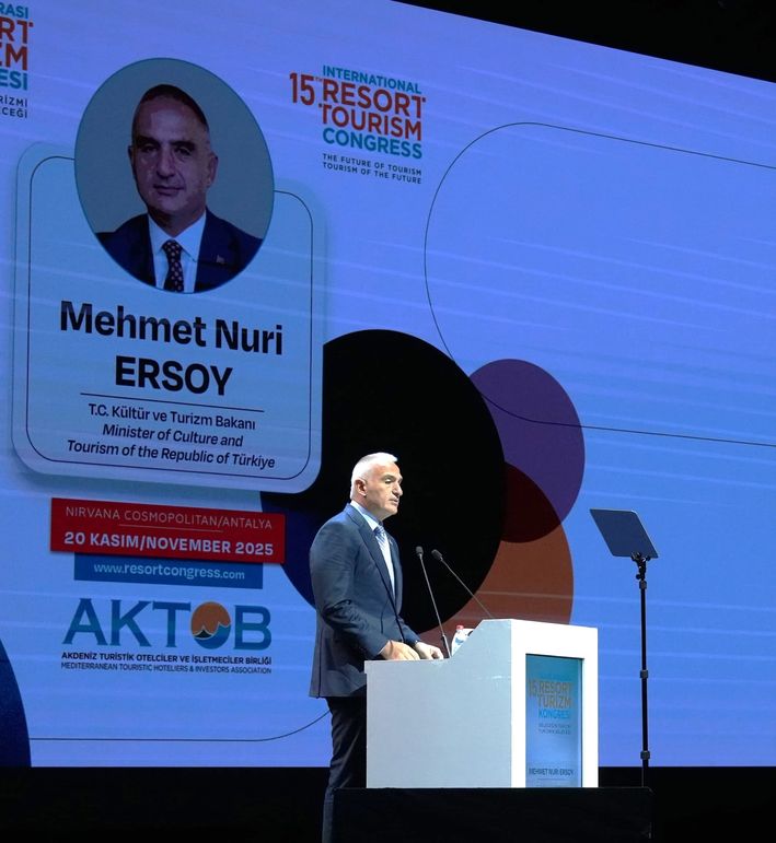 Türkiye'nin, nitelikli bir turizm stratejisiyle son yıllarda yalnızca değişen trendlere uyum sağlamaya çalışan bir oyuncu olmaktan sıyrılıp küresel turizm politikalarının şekillenmesinde aktif rol oynayan bir ülke konumuna yükseldiğini ifade eden Bakan Ersoy, "Değerli paydaşlarımızla omuz omuza, 64 milyar dolarlık 2025 yılı turizm geliri hedefimize ulaşacağımıza; birlikte ortaya koyacağımız her yeni hedefi de yakalayıp aşacağımıza yürekten inanıyorum. Birlikteliğimizin aşamayacağı engel, üstesinden gelemeyeceği zorluk yoktur. İnanıyorum ki önümüzdeki yıllar, yeni rekorlarla Türk turizmini küresel arenada zirveye taşıdığımıza şahitlik edecektir" dedi.