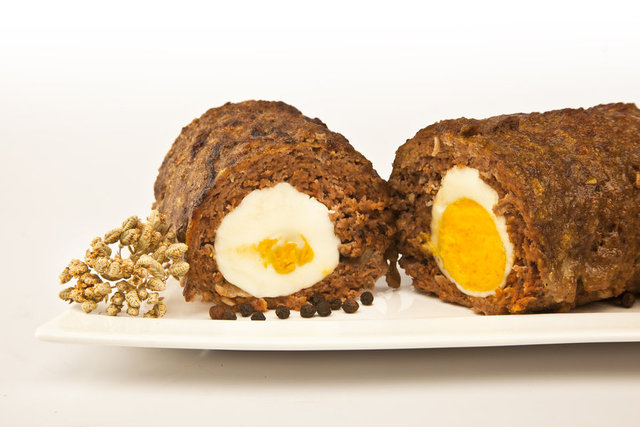 Orijinal tarifinde yumurta kullanılan dalyan köfte sosuyla beraber servis ediliyor.