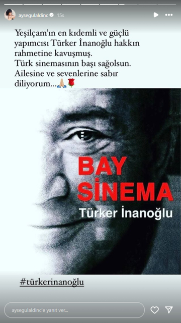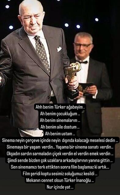 Türker İnanoğlu’na Allahtan rahmet, tüm sevenlerine sabır diliyorum. Biricik evlatları sevgili İlker ve sevgili Zeynep size sıkı sıkıya sarılıyorum. Türk sinemasının başı sağ olsun.