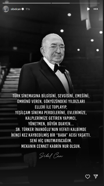 Türk sinema ve televizyon dünyamızın duayeni, değerli dostum Türker İnanoğlu’nu kaybettik. Yapımcı, yönetmen, senarist olarak ömrünü sanata adamış Türker İnanoğlu’na Allah’tan rahmet, ailesine ve sevenlerine sabır ve başsağlığı dilerim. Mekânı cennet olsun.