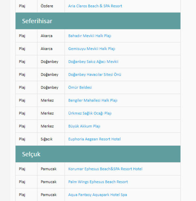 Mavi Bayraklı plaj sayıları Antalya'da 206'ya, Muğla'da 105'e, Aydın'da 35'e, İzmir'de 52'ye, Balıkesir'de 31'e, İstanbul'da 2'ye, Samsun'da da 13'e yükseldi. Çanakkale, Kırklareli, Kocaeli, Düzce, Ordu, Mersin ve Van'da ise geçen yılın rakamları korundu.