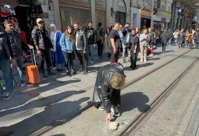 İstanbul'daki Rusya Başkonsolosluğu'nda kurulan seçim merkezine gelen Ruslar, İstiklal Caddesi'nde yoğunluk oluşturdu.