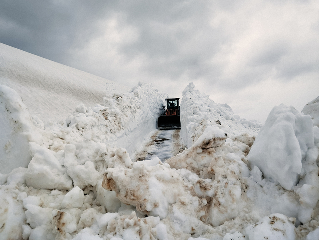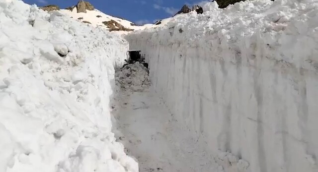 Hakkari'nin Yüksekova ilçesindeki İkiyaka Dağları bölgesinde de haziran ayına rağmen kalınlığı 6 metreyi bulan karda yürütülen yol açma çalışmaları devam ediyor.