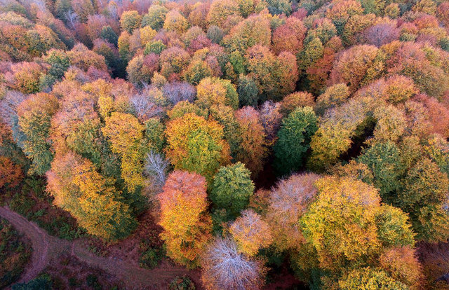 Kırklareli'ndeki kayın ve meşe ağırlıklı ağaçlardan oluşan Longoz ormanları, sonbaharın gelmesiyle renk değiştirdi.