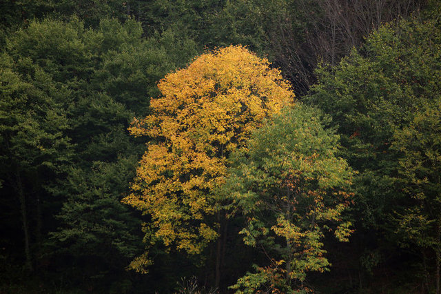 Sonbaharda sarı ve kahverenginin farklı tonlarına bürünen ormanda derelere ağaçlardan dökülen sarı yapraklar ile yeşil tonlarını her mevsim koruyan bitkiler, seyrine doyulmayan manzaralar oluşturdu.