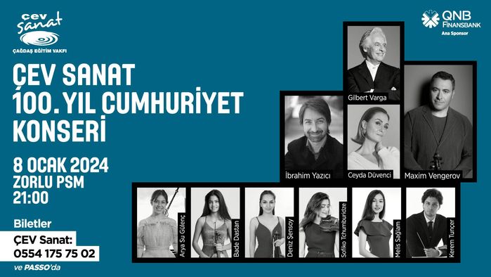 ÇEV Sanat'ın genç sanatçıları ve 21. yüzyılın önemli keman virtüözü Maxim Vengerov'un birlikte sahne alacağı, yeni yılın ve Cumhuriyet'in 100. yılının ilk konseri, 8 Ocak 2024 Pazartesi akşamı Zorlu PSM'de gerçekleşecek