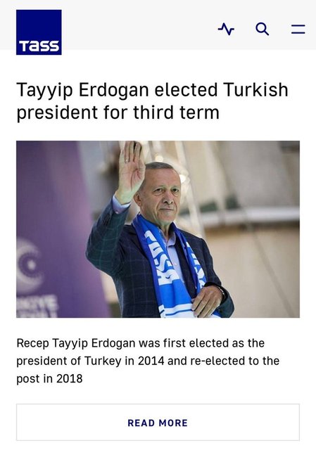 Rus TASS haber ajansı da "Tayyip Erdoğan cumhurbaşkanlığının üçüncü döneminde yeniden seçildi" ifadelerini yer verdi.