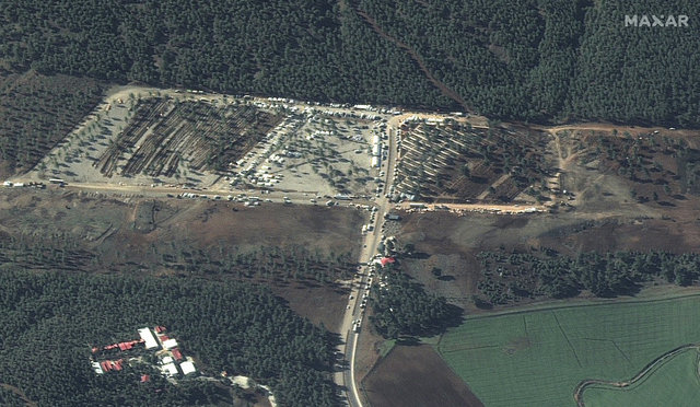 Maxar'ın paylaştığı bu görüntüde, binlerce insanın hayatını kaybettiği depremlerin ardından oluşan toplu mezarlar görülüyor.