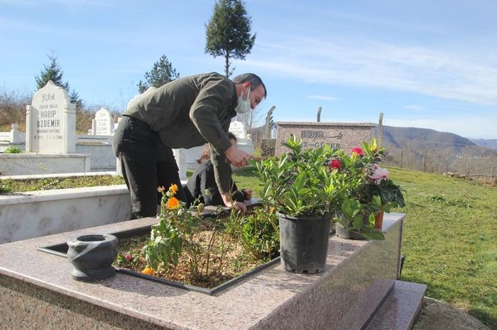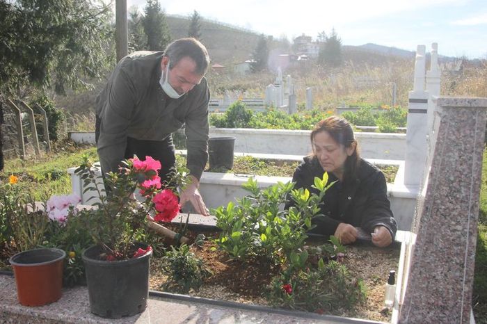 Anne Güfer ve baba Yılmaz Özdemir, 3 Aralık 2019'da kaybettikleri kızlarının, Ulubey ilçesi Kumanlar Mahallesi'ndeki kabri başına geldi. Özdemir çifti, kabrine çiçek bıraktıkları kızları için dua etti.