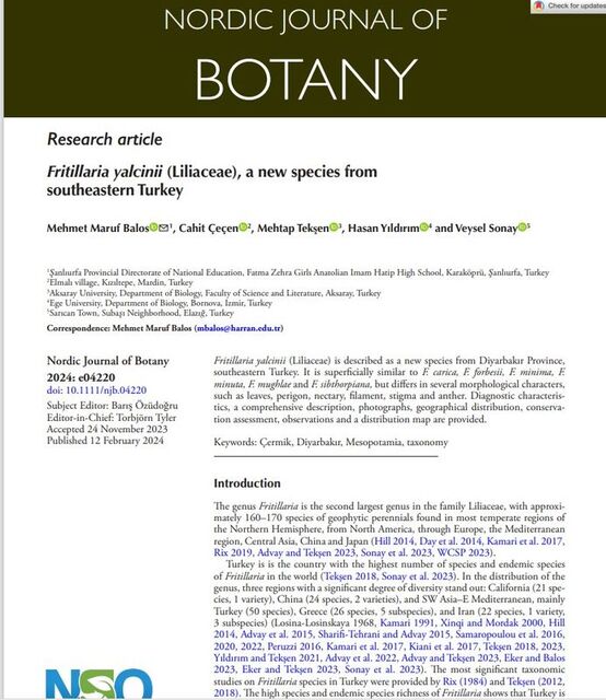 Yapılan saha çalışmaları sonucunda konu uzmanı Prof. Dr. Mehtap Tekşen ve bizlerle beraber bu bitki üzerine yaptığımız bilimsel çalışmalar sonucunda, bu bitkinin şu ana kadar dünyada tanımlanmamış bir ters lale olduğu sonucuna vararak, Nordic Journal Of Botany dergisine bunun makalesini yazarak bu bitkinin bilim dünyasına tanıtılmasını sağladık” dedi.
