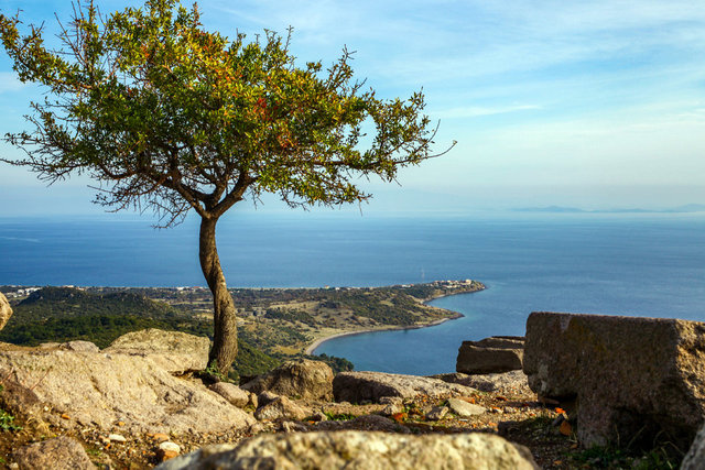 Assos’un en güzel koyu olan Kadırga Koyu’na arabayla ya da otobüsle ulaşım oldukça kolay… Yemyeşil doğanın içerisinde masmavi bir denizle sizi buluşturan koy, uzun ve taşlık bir plajıyla öne çıkıyor. Sonbaharın ilk günlerinde sizi çarşaf gibi bir deniz karşılıyor.
