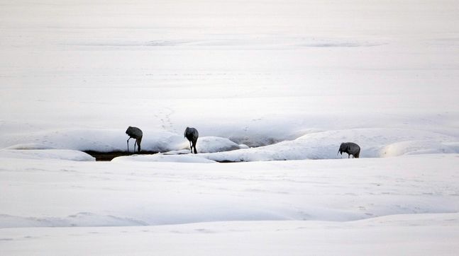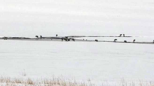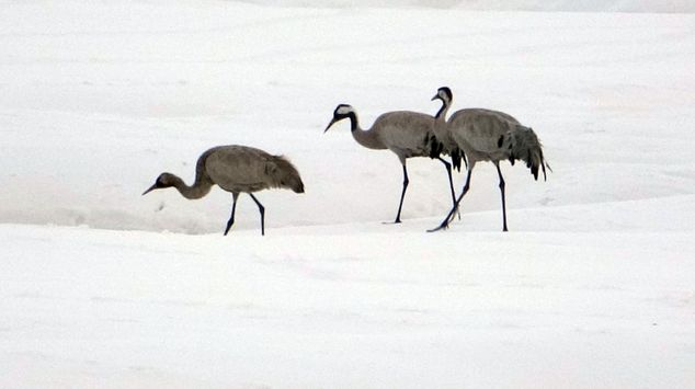 İHA'nın haberine göre her sene olduğu gibi yine göç yoluyla gelen onlarca kuş türünden biri olan ‘Turna’ kuşu ovada bulunan kar üzerinde sürü halinde görüntülendi.