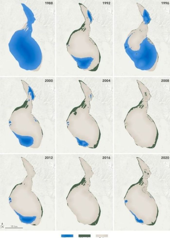 "Tuz Gölü'nün 30-40 yıl önceki değerlerinde yüzey doluluk alanı 92 bin 652 hektardı. Yani neredeyse alanın hepsi su ile doluydu. Bu alan 2-3 ay öncesine kadar 32 bin 500 hektar alana kadar gerilemişti. Son yaptığımız araştırmalarda Tuz Gölü'nün su dolu alanı yüzde 10 seviyelerine kadar düştü. Yani 9 bin hektar civarında sulu bir alan kaldı. Bu s"eviye hem kuraklık hem de yer altı sularının çekilmesiyle ilgili bizlere bilgi veriyor."