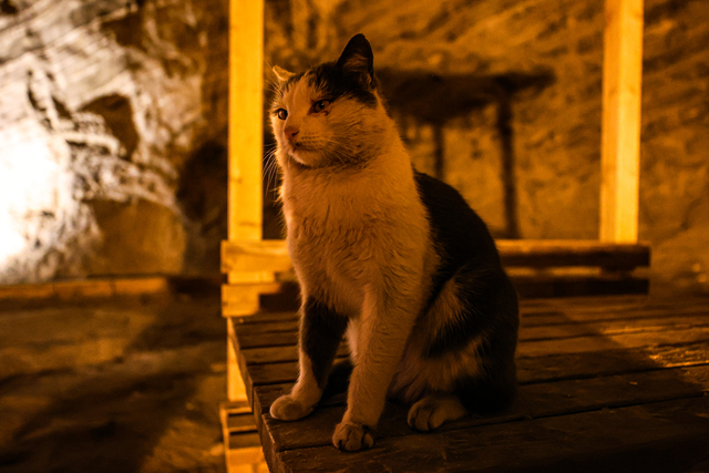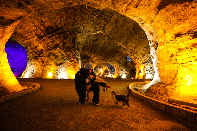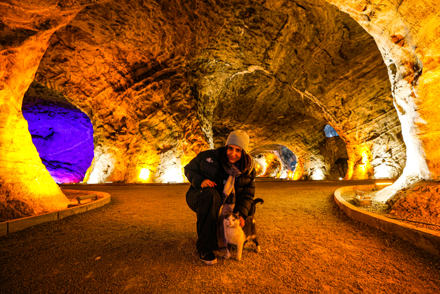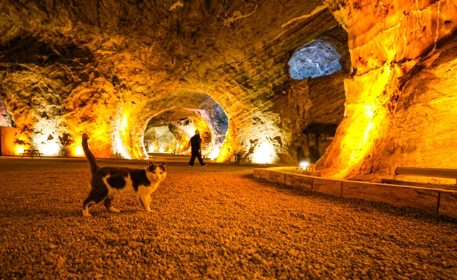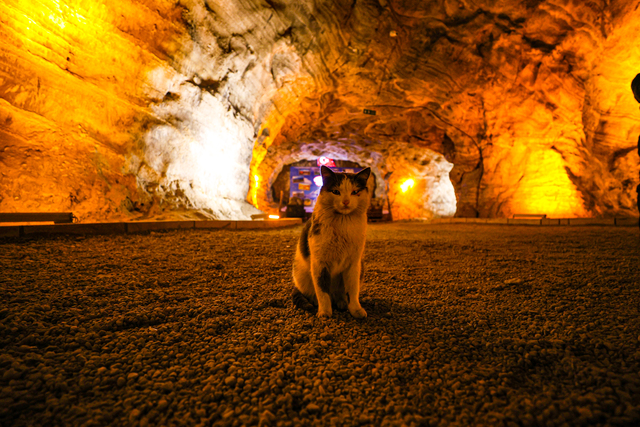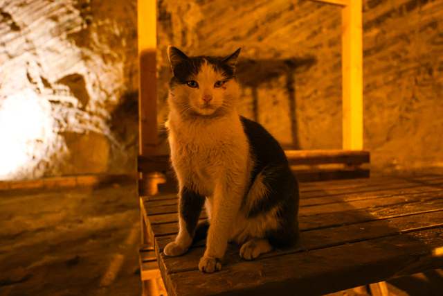 Yerin 80 metre altındaki Iğdır Tuz Mağaraları'nın maskotu Duman adlı kedi, turistlere gezilerinde eşlik ediyor