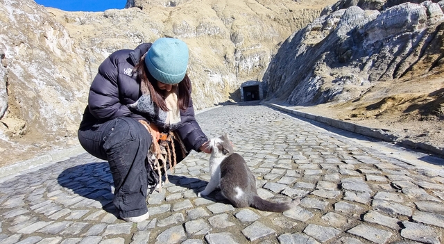 Ziyaretçilerden Fatime Badalova da "Duman"ın gezi boyunca kendilerine eşlik ettiğini belirterek, "Bu kediyi çok sevdik. Adeta dağın içinde bize rehberlik etti, o çok meraklı, biz de onu takip ettik. Onunla mağarayı ve dağı gezerek merakımızı giderdik" ifadelerini kullandı.
