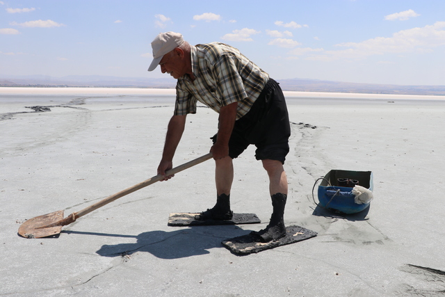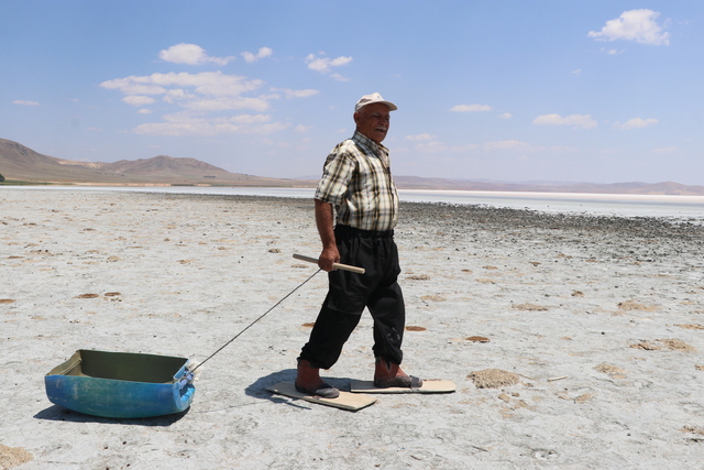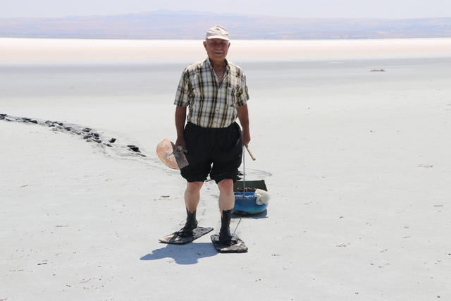 Kayseri'nin Sarıoğlan ilçesindeki Tuzla Gölü'nde, bölge halkının yerel yöntemlerle yaptığı tuz hasadı, bu yıl yüksek sıcaklıklar ve yağışların az olması nedeniyle ilk kez yapılamadı. Bölgede 30 yıldır tuz çıkardığını ve gölde batmamak için kendi geliştirdiği, 'helik' adını verdiği tahta ayakkabıları giydiğini söyleyen Bekir Dikmen, "2 yıldır tuz çıkarmakta çok zorlanıyoruz. Geçen yıl az da olsa tuz çıkarıp, gelir elde etmiştik. Bu yıl hiç çıkaramadım" dedi.