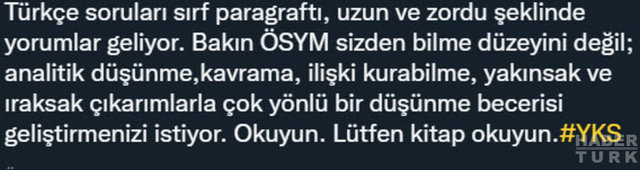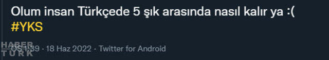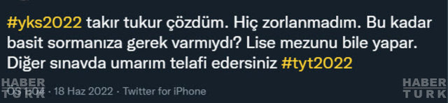 Üniversite sınavının ilk oturumu olan 2022 Temel Yeterlilik Testi (TYT), 18 Haziran 2022 Cumartesi günü tamamlandı. Sınavın ardından öğrenciler, Twitter başta olmak üzere birçok sosyal medya platformunda akıllarda kalan soruları yazıyor. Buna göre, TYT'de öğrencilere sorulan bilge bisiklet sorusu, kek kurabiye börek aynı fırın sorusu, Cansu sorusu, Spider Man ve Stan Lee sorusu, Ayşe'nin Evi sorusu akıllarda kaldı. İşte, öğrencilerin Twitter'da yazdığı ve 2022 TYT'de akıllarda kalan o sorular...