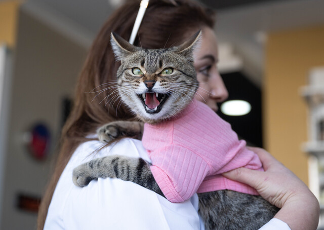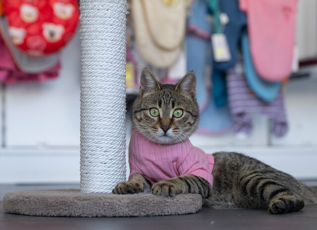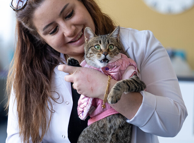 Ankara'da bir veteriner kliniğinde yaşayan üç bacaklı kedi Tripod engeline rağmen enerjik yapısıyla esnafın maskotu haline geldi