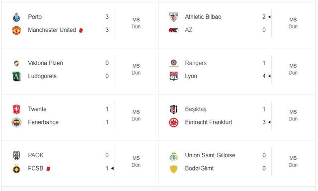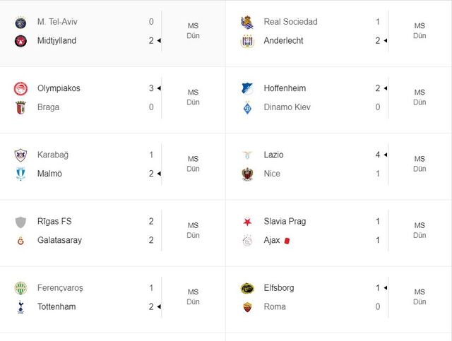 UEFA AVRUPA LİGİ 2. HAFTA MAÇ SONUÇLARI