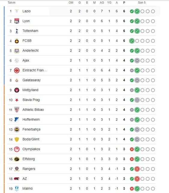 AVRUPA LİGİ'NDE FENERBAHÇE, GALATASARAY VE BEŞİKTAŞ KAÇINCI, KAÇ PUANI VAR?