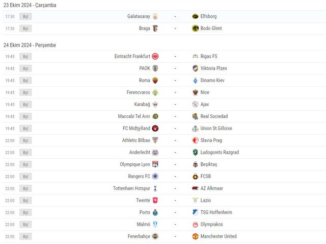 UEFA AVRUPA LİGİ 3. HAFTA MAÇ PROGRAMI