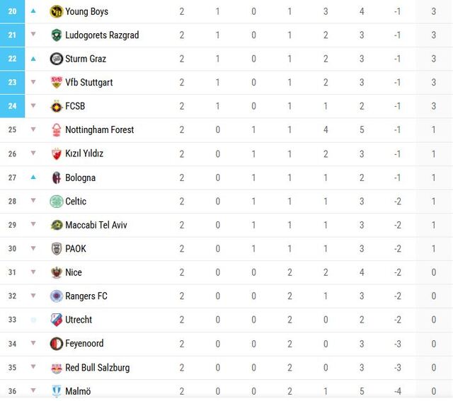 AVRUPA LİGİ PUAN DURUMU
