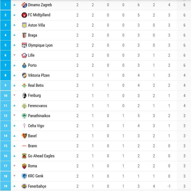 UEFA Avrupa Ligi'nde heyecan 2. hafta maçları ile sürüyor. Bu kapsamda temsilcimiz Fenerbahçe kendi sahasında Fransız temsilcisi Nice'i ağırladı. Chobani Stadı'nda oynanan mücadelede temsilcimiz Fenerbahçe, Nice'i 2-1 mağlup etmeyi başardı. Oynanan mücadelenin ardından, "Fenerbahçe Avrupa Ligi'nde kaçıncı sırada, kaç puanı var?" soruları futbolseverlerin gündemini meşgul etmeye başladı. İşte UEFA Avrupa Ligi puan durumu...