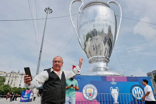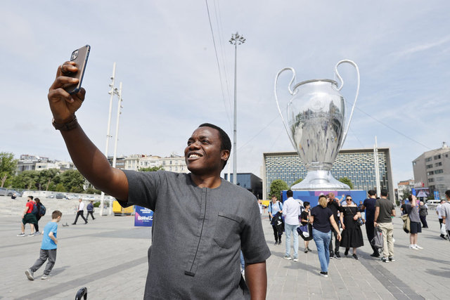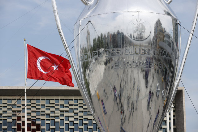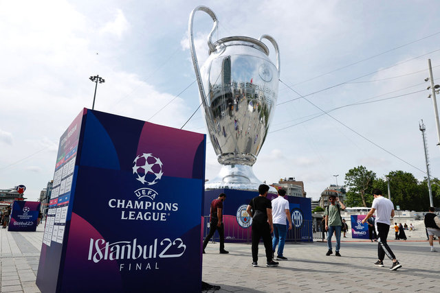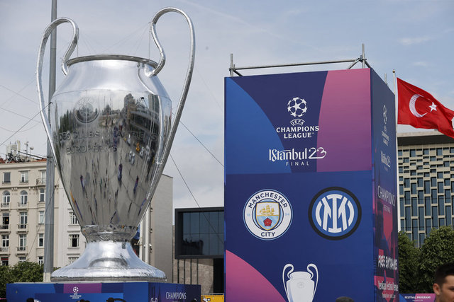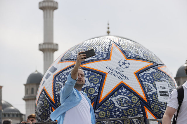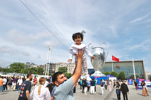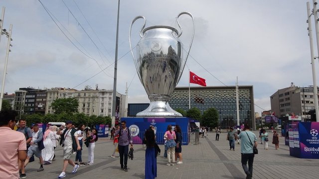 İstanbul'da 10 Haziran'da oynanacak UEFA Şampiyonlar Ligi finali öncesinde kupanın dev maketi, Taksim Meydanı'nda sergileniyor