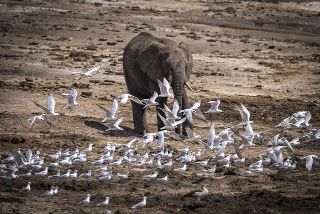 Görüntülerde, Afrika'nın en bilindik hayvan türlerinden savan fillerinin, parka kıyısı olan masmavi gölde yürümesi de bulunuyor. Su aygırlarının yakıcı güneşin altında gölde yüzmesi ve göl kenarında dinlenen timsah, görüntülerde dikkati çekiyor.