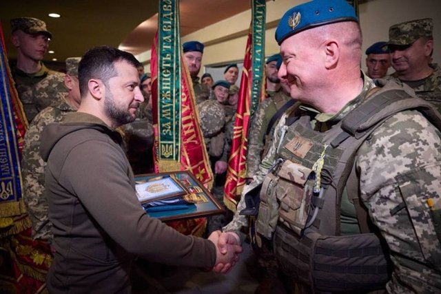 Cephedeki gelişmelerle ilgili komutanlardan bilgi alan Zelenskiy, Ukraynalı deniz piyadelerinin düşmana karşı etkili şekilde savaştıklarını dile getirdi.