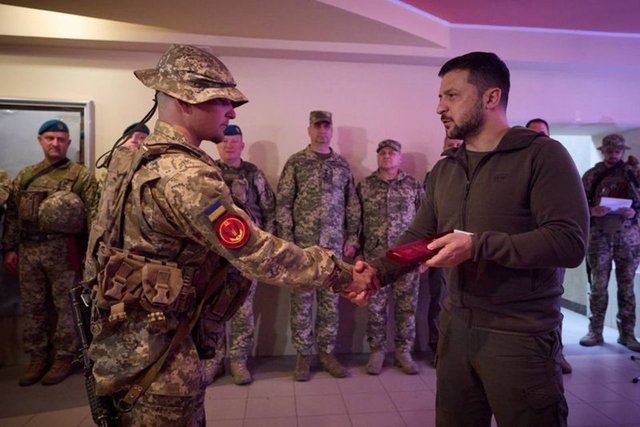 Rusya'nın Ukraya'ya yönelik 24 Şubat 2022'de başlattığı saldırılar devam ederken Ukrayna Devlet Başkanı Zelenskiy, Donetsk bölgesinde Ukraynalı askerleri ziyaret etti