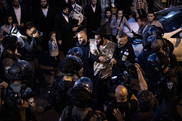 Göstericiler, İsrail polisine "Naziler" diyerek tepki gösterirken taraflar arasında zaman zaman arbede yaşandı. İsrail polisi, iki kişiyi gözaltına aldı.