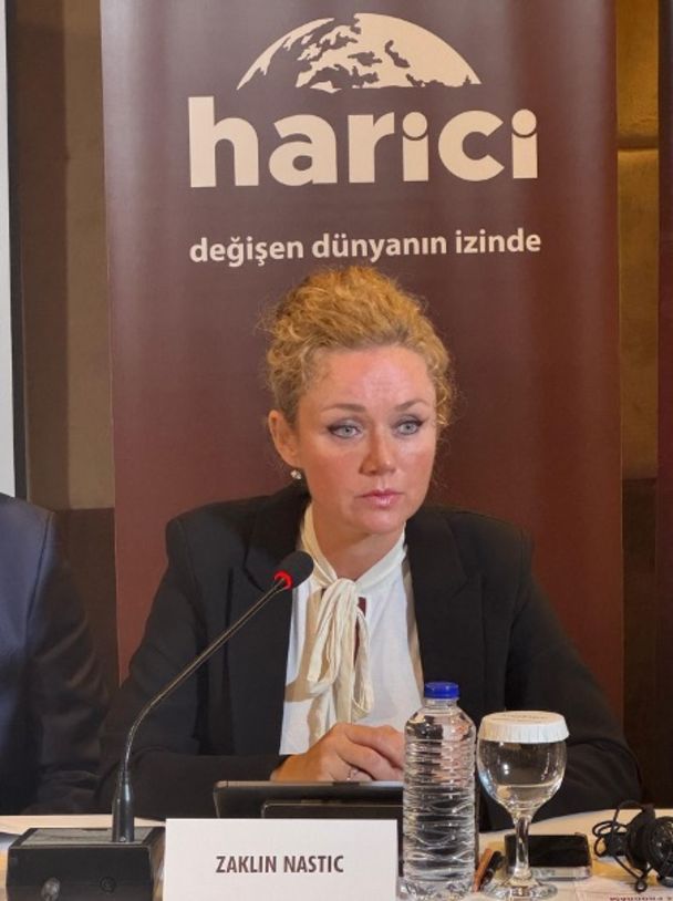 Konferansa çevrimiçi bağlanan Avrupa Üniversitesi Enstitüsünden Prof. Kalypso Nicolaidis, eski AB Yüksek Temsilcisi Joseph Borrell’in konferansa selamlarını ilettiğini söyledi ve Avrupa'nın İsrail-Filistin ihtilafında daha aktif rol alması gerektiğini vurguladı.