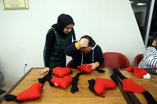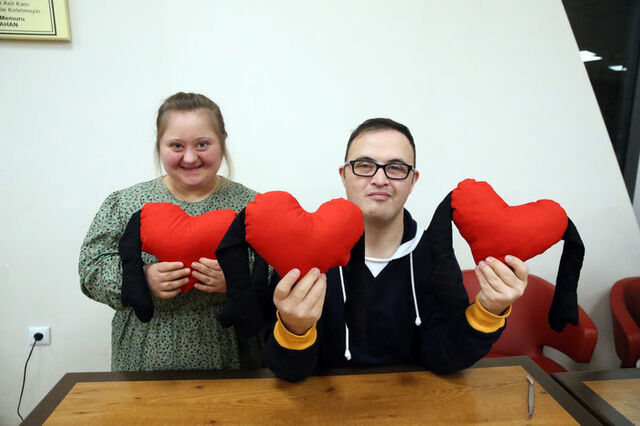 Çalışmalarını ilerletmeyi istediklerini vurgulayan Şentürk, "Burada herkes gönüllü. 3 Aralık Dünya Engelliler Günü'nde çocuklarımızın kalbine dokunabilmek için bu küçük kalp şeklinde yastıkları seçtik. Umarım yüzlerini güldürebiliriz." dedi.