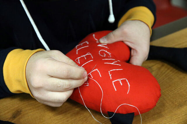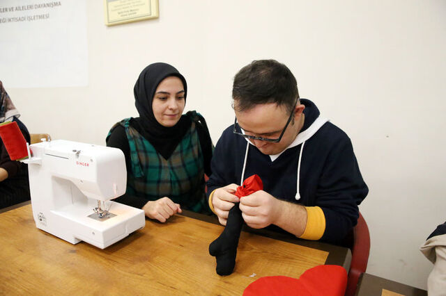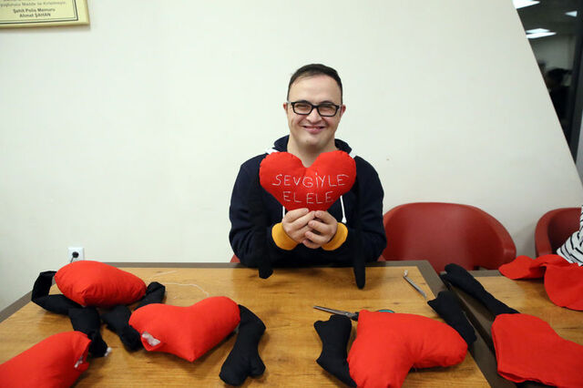 Kastamonu'da özel gereksinimli birey anneleri tarafından yapılan, "Sevgiyle el ele" yastıkları, 3 Aralık Dünya Engelliler Günü'nde yine özel gereksinimli çocuklara hediye edilecek. Özel Bireyler ve Aileleri Dayanışma Derneği Başkanı Huriye Boyraz, çalışmalara birkaç gün önce başladıklarını belirterek, "Mutlu Kafe'mizin bir köşesini dikiş makineleriyle atölyeye dönüştürdük. 15 özel birey annemiz ve çocukları ile devam ediyoruz" dedi. Özel gereksinimli birey anneleriyle atölye oluşturan Şerife Şentürk ise ""Burada herkes gönüllü. 3 Aralık Dünya Engelliler Günü'nde çocuklarımızın kalbine dokunabilmek için bu küçük kalp şeklinde yastıkları seçtik. Umarım yüzlerini güldürebiliriz" dedi
