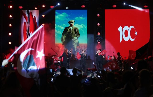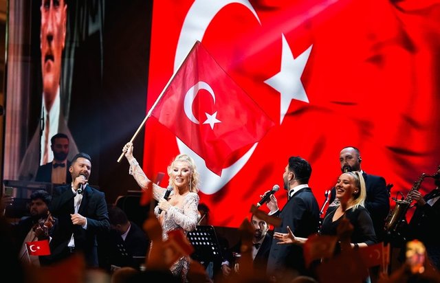 29 Ekim'de Cumhuriyet'in 100'üncü yılı yurdun dört bir yanında kutlandı. Ünlü şarkıcılar da marşlar ve şarkılar söyleyerek, sahnede dinleyicilerine 29 Ekim coşkusunu doyasıya yaşattı