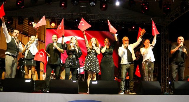 Gecenin ilerleyen saatlerinde “Onuncu Yıl Marşı”nın Nilüfer’in sesinden yankılandığı konserde binlerce müziksever elindeki Türk bayraklarıyla alanı kırmızı beyaza çevirdi.