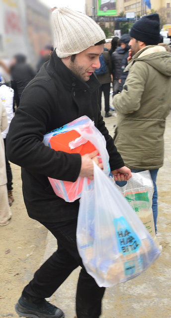 Ünlü oyuncu, yardım kolilerini taşırken objektiflere böyle yansıdı.
