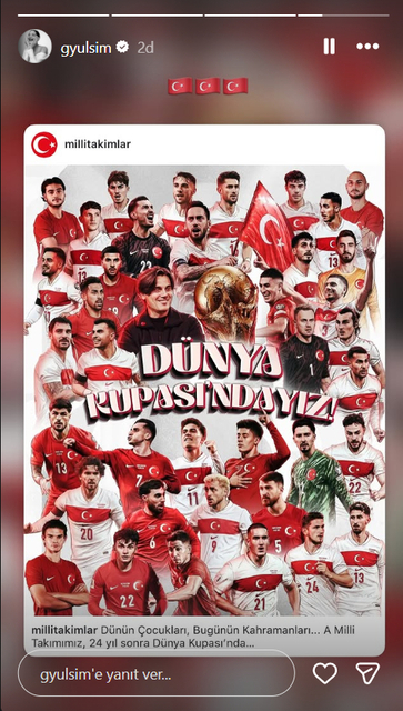 A Milli Futbol Takımımız, 2026 FIFA Dünya Kupası play-off finalinde deplasmanda Kosova'yı 1-0 mağlup ederek Dünya Kupası bileti aldı. Tarihi galibiyetin ardından ünlü isimler de sevinçlerini sosyal medya hesaplarından paylaştı