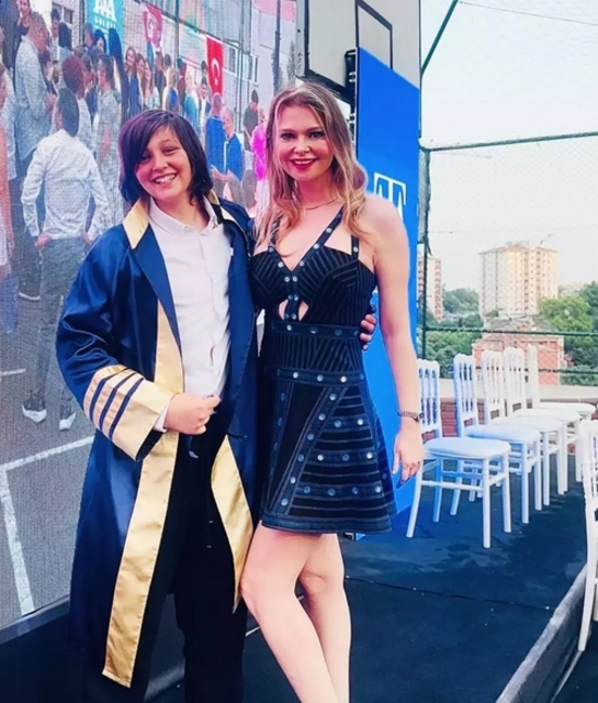 Ünlü oyuncu; "Öyle güzel öyle harika hisler içindeyim ki, hem duygusallığı hem de mutluluğu bir arada yaşıyorum. Ne söylesem az kalacak biliyorum. Seninle gurur duyuyorum benim canım kızım. Seni çok seviyorum. Yepyeni başlangıçlar da, tüm güzellikler tüm iyilikler seninle olsun, yolun ve şansın hayat boyu açık olsun" dedi.