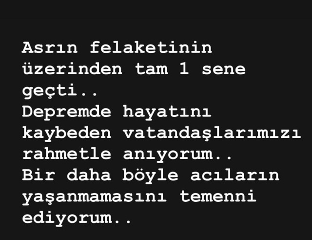 6 Şubat depreminde kaybettiğimiz tüm canlarımıza Allah, rahmet eylesin. Mekânları cennet olsun. Geride kalan sevdiklerine, ailelerine sabır diliyorum. Başımız sağolsun... Unutmadık, unutmayacağız.