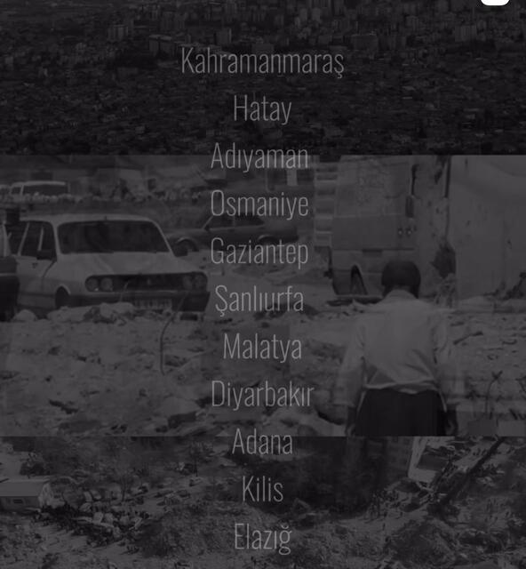 Kahramanmaraş, Hatay, Adıyaman, Osmaniye, Gaziantep, Şanlıurfa, Malatya, Diyarbakır, Adana, Kilis ve Elazığ sizi hiç unutmadık.