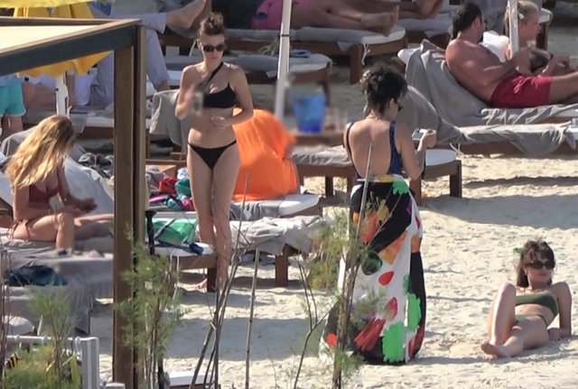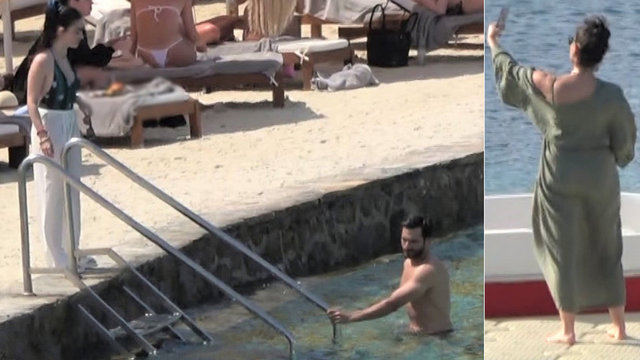 Ünlüler, konakladıkları otelin plajında görüntülendi. Tatilden renkli anlar objektiflere takıldı.