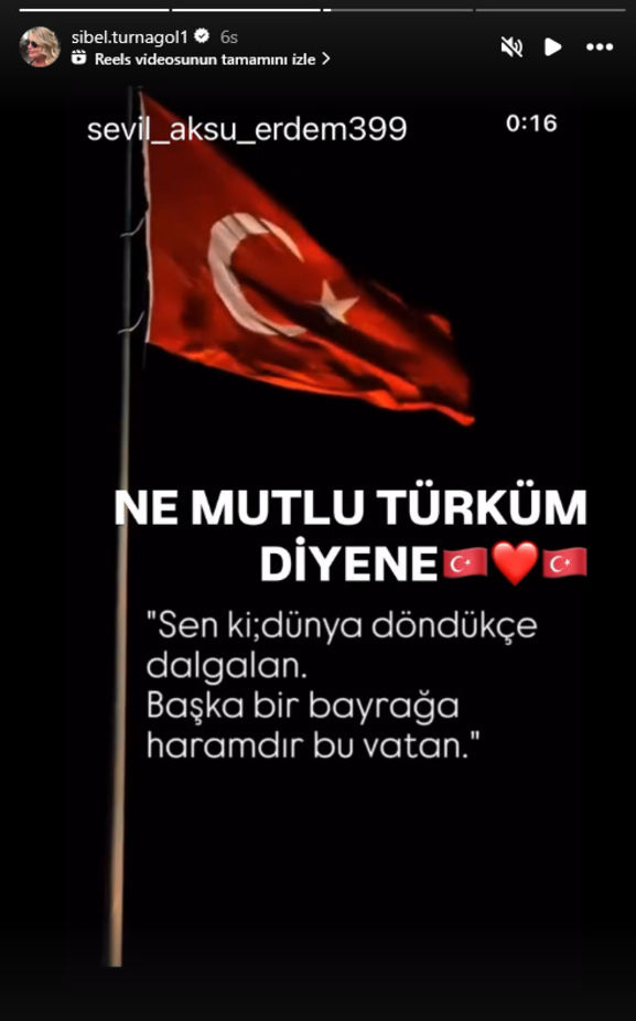 Sibel Turnagöl: Ne mutlu Türk'üm diyene. Sen ki; dünya döndükçe dalgalan. Başka bir bayrağa haramdır bu vatan.