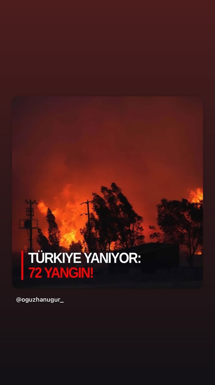 Burcu Özberk: Kafayı yiyeceğim gerçekten. Her yerde yangın var. Türkiye yanıyor, her gün kül oluyor. Hiçbir şey yapamıyoruz. Vallahi delirmemek mümkün değil.