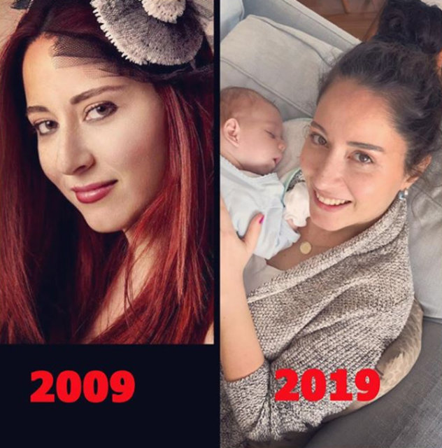 "10 year challenge varmış... Ben de 2009'u hamile geçirmişim... 10 yıl dile kolay! Portakalda vitamin ne hale gelmiş. Nice '10 yıl Instapost'larına dostlar... Bakalım bir 10 yıl sonra Instagram olacak mı ya da Tara'nın bebeği falan olur mu acaba?"